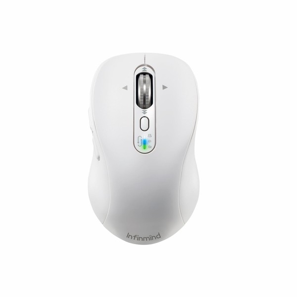 INFINMIND Wireless Bluetooth Mouse with 4 Way Scrolling, Rechargeable, 4 Level 3200 DPI, Quiet Click, 3 Devices Mice for Windows,Linux,Mac OS,iOS,Android (White)