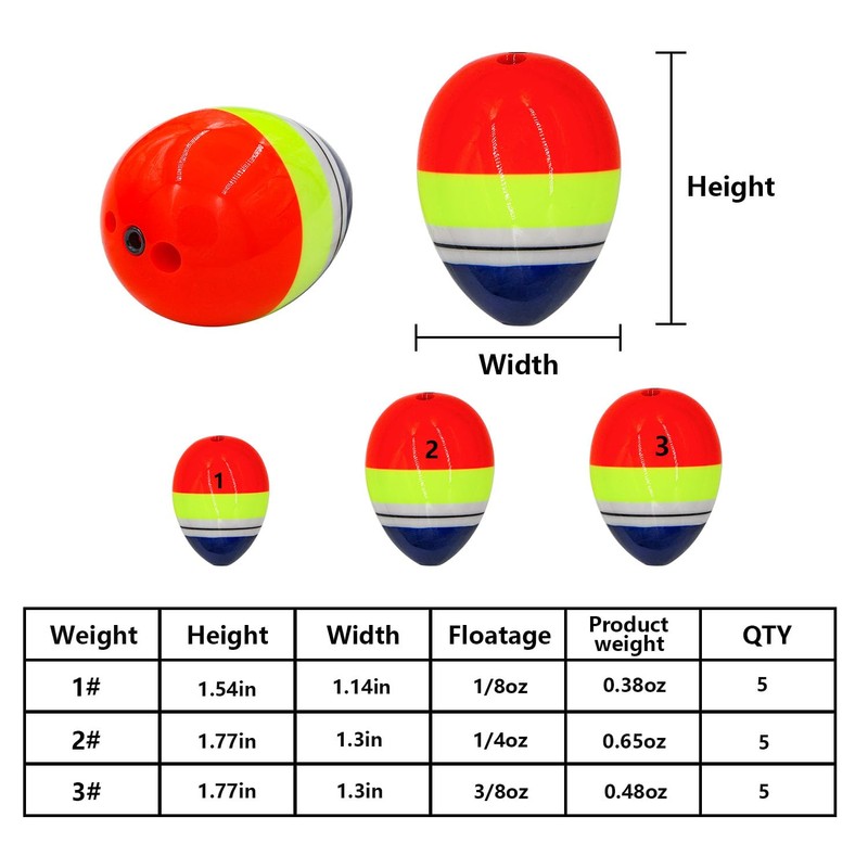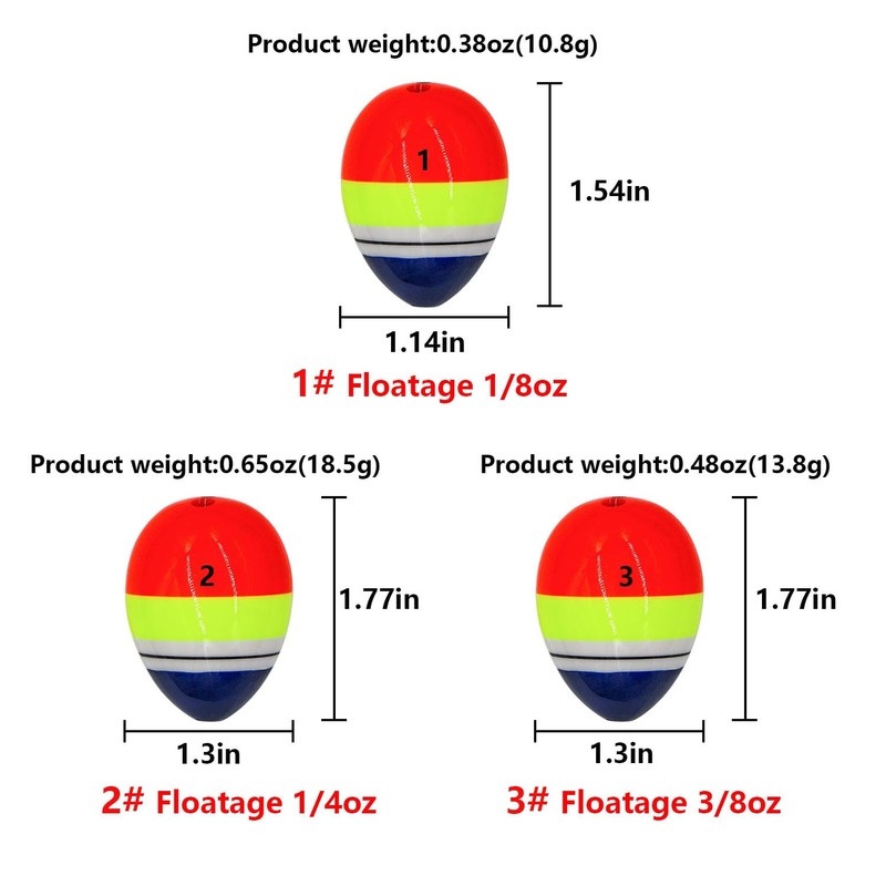 - There are 3 sizes for your choose. A total of 5 fishing floats of the same size are placed in a reusable fishing box.