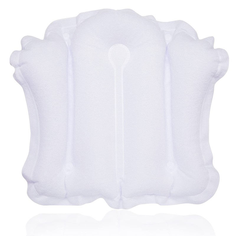 - Product details: the inflatable bath pillow is about 14 x 12 inches with cloth cover and suction cups, large, quality and soft, suitable for your tub bathing