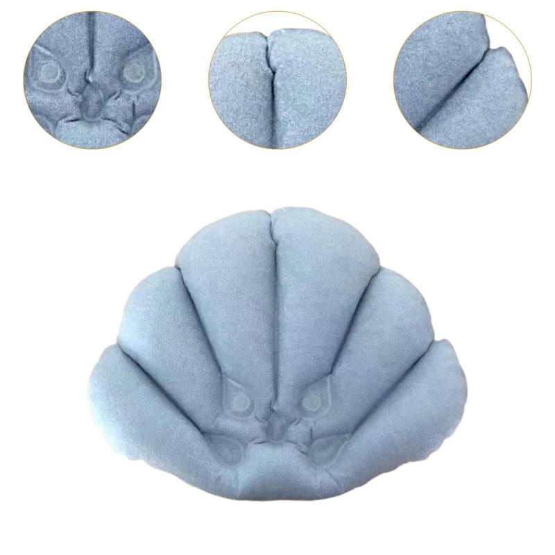 KLKCMS Inflatable Bath Pillow Shell Shaped Suction Cup Bath Cushion Neck Support Pillow for SPA, Blue