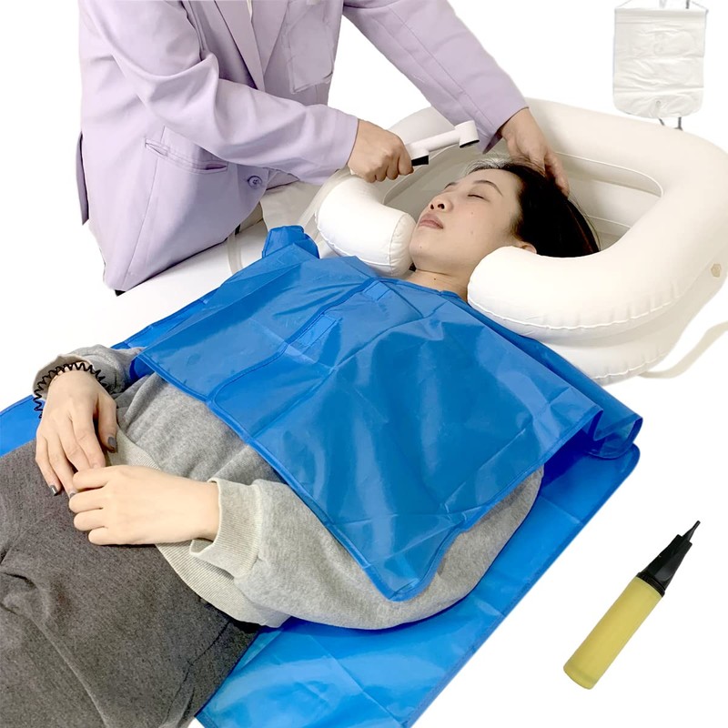 - Inflatable portable bedside shampoo basin: Makes it easy and safe to wash a loved one or patients hair who is on long term bed rest or limited mobility, such as bedridden disabled elderly.