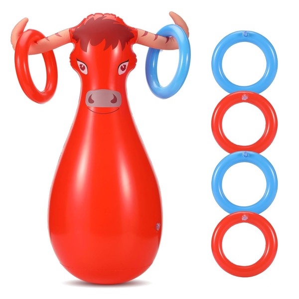 - Ample Quantity for Extended Enjoyment: our package comes with 1 inflatable bulls and 6 inflatable rings (3 red and 3 blue), along with 1 convenient inflator for quick and easy set up (random color), ensuring your parties and events are filled with stunning entertainment