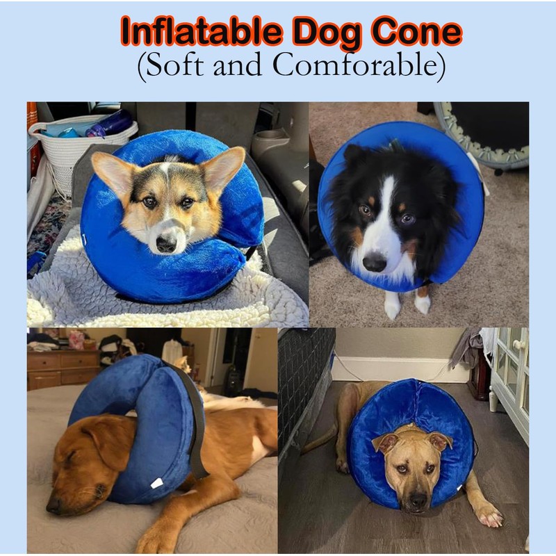 - Inflatable dog collar will allow dog or cat to avoid the restriction of vision, movement, playing, eating, drinking, or sleeping during the hеаling period. This unit is not bulky,the cover is made of soft and skin-friendly fabric that doesn’t chafe or rub the canine’s skin.