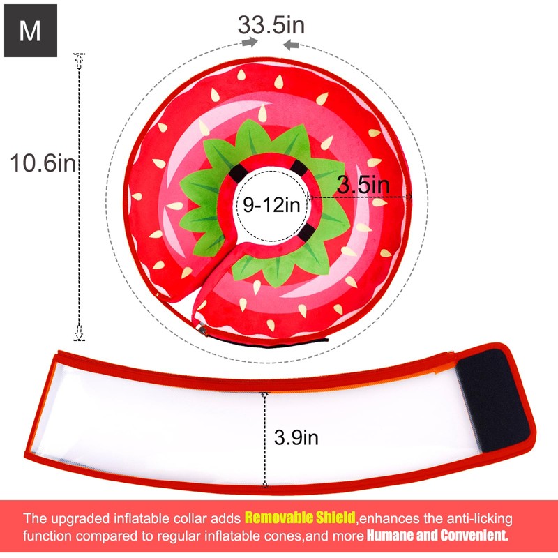 11. The orange and red strawberry styles of the inflatable collar are brightly colored, very cute to wear on a dog;