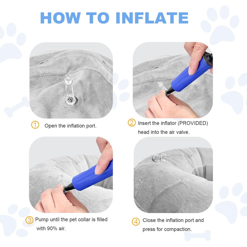 • INFLATABLE FOR CONVENIENT STORAGE: adopting inflatable structure, the dog surgery collar is simple to use, can be deflated for compact storage, making it convenient for space saving, also will not bring too much pressure to your dog’s neck, make it easy for dogs to do the routine