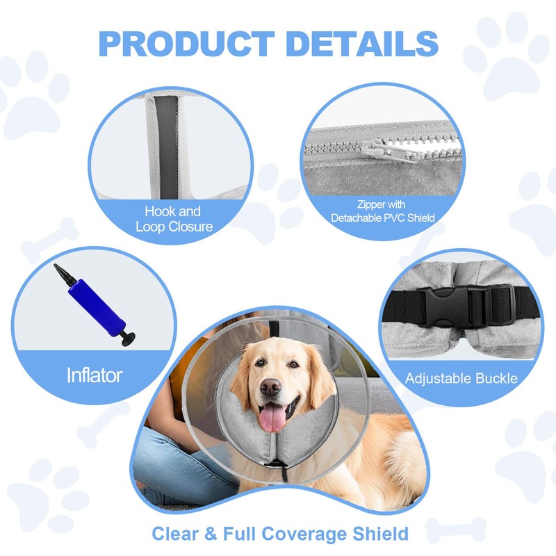 • ANTI LICKING SHIELD WITH CLEAR VISION: equipped with a removable transparent shield, the inflatable dog collar effectively prevents licking while ensuring your dog’s visibility remains unobstructed, also, you can remove it at will