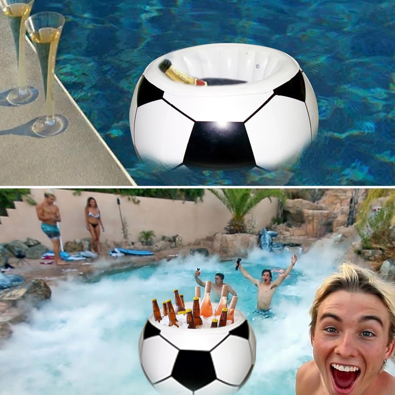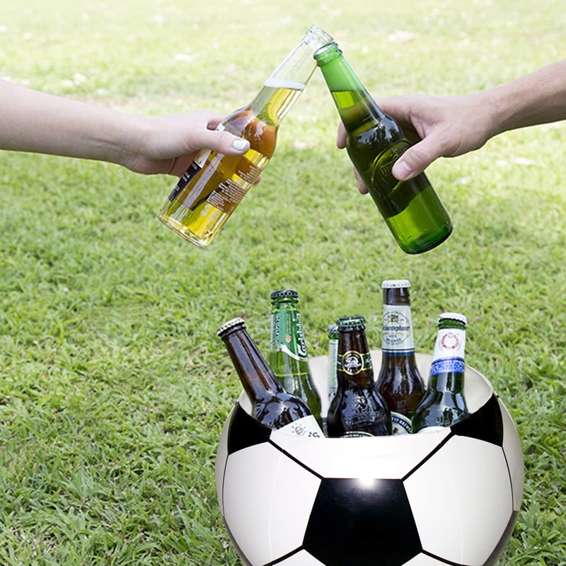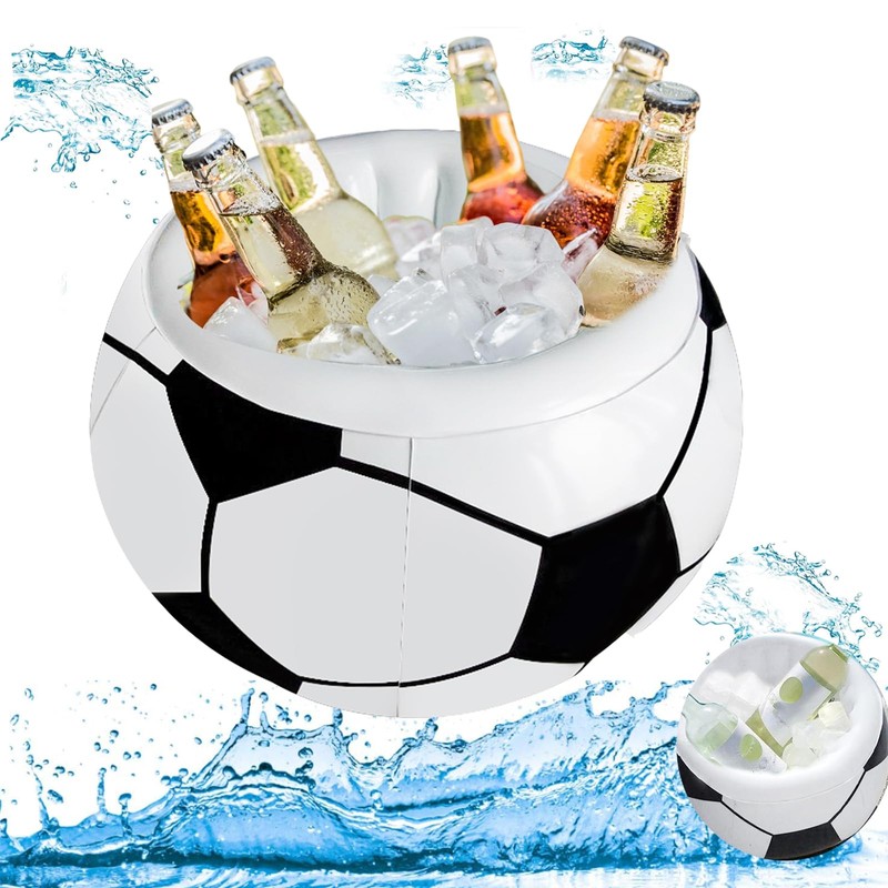 This item is inflatable. Made of high quality PVC, durable. Timetable. With the original shape of the football, it is fun and charming, full of the summer atmosphere. In addition, a party decoration and a good ice bucket.