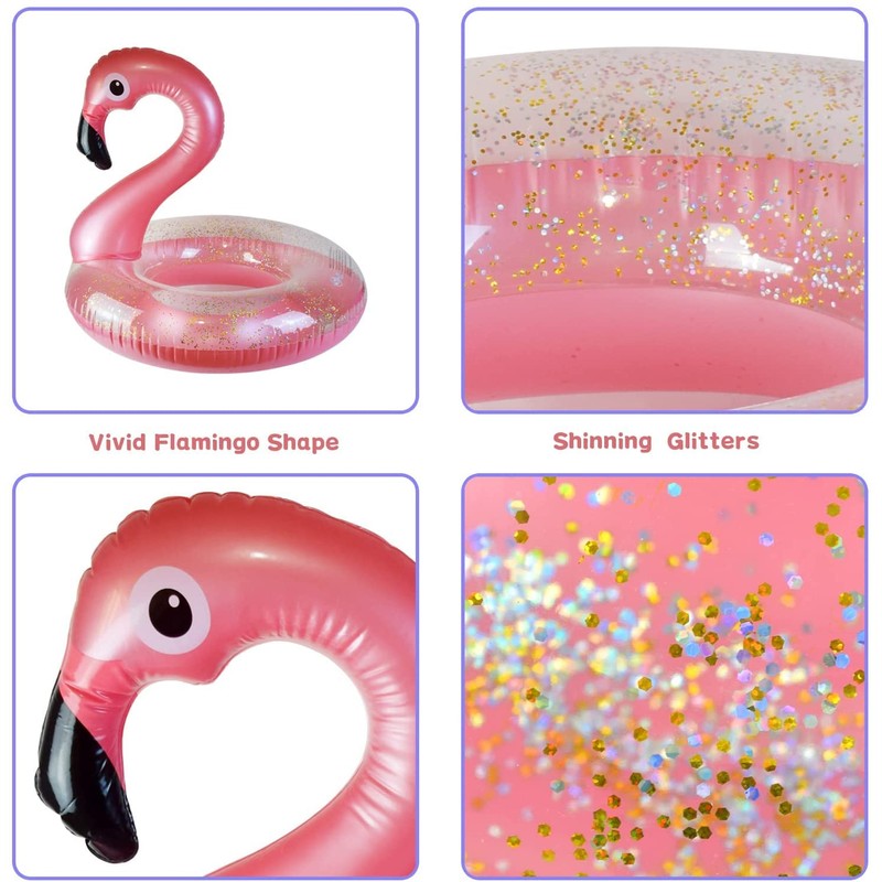 - Fun and cool: the swimming ring is a cute one that will make your pool party a little fun: shiny flamingo inner tube pontoons ensure joy during pool and beach activities.