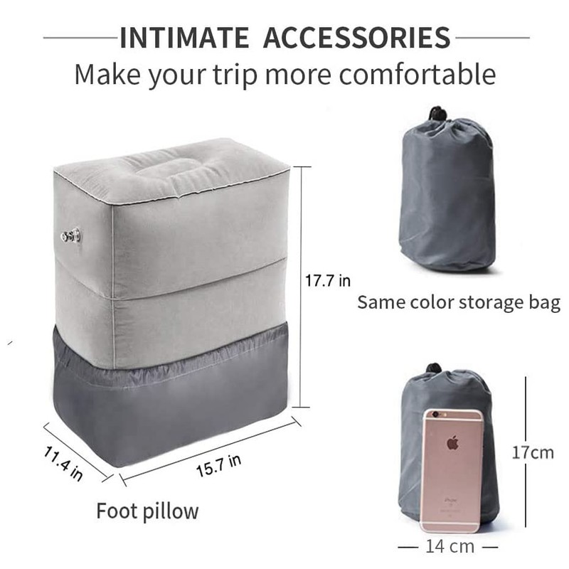 - ✈️【Height-adjustable design】The travel foot cushion has a 2-in-1 double valve that promotes inflation and deflation better. Adjustable 3 heights: 5.9 inches, 11.8 inches, 17.7 inches. It can meet your needs at different heights.