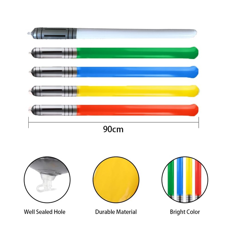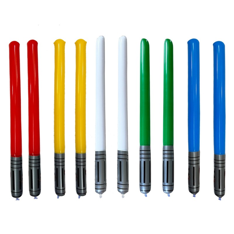 • Pack of 10 inflatable lightsabers: the inflatable lightsaber set contains 10 pieces in 5 different colours: blue, red, yellow, green, white (2 of each colour). Enough quantity to play and replace so you can easily and safely be a role player at a party, perfect for imaginative play and action-packed adventures.