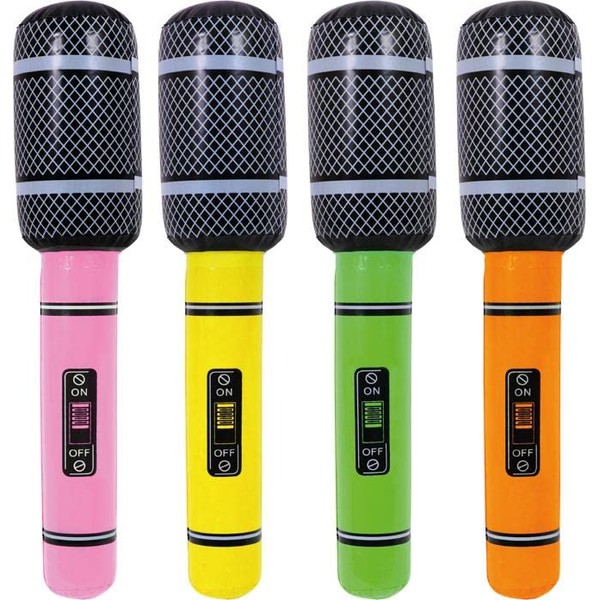 • NOVELTY NEON MICROPHONE - You will receive 1 deflated novelty/joke inflatable microphone. Black & White colour details with a neon colour handle (orange, green, yellow, pink). 1 will be sent at random.