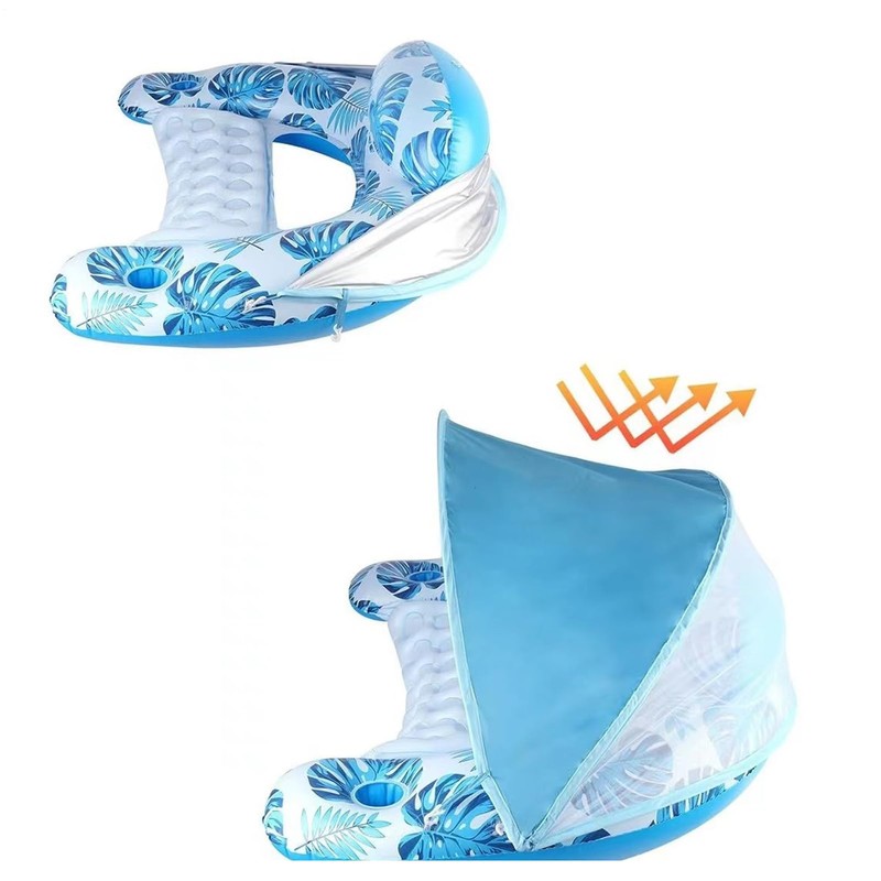 Inflatable Pool Float - Water Float Pool Rafts for Adults | Floating Lounger with Cup Holder Sunshade for Lake River Beach Swimming Summer Outdoor Fun Activities