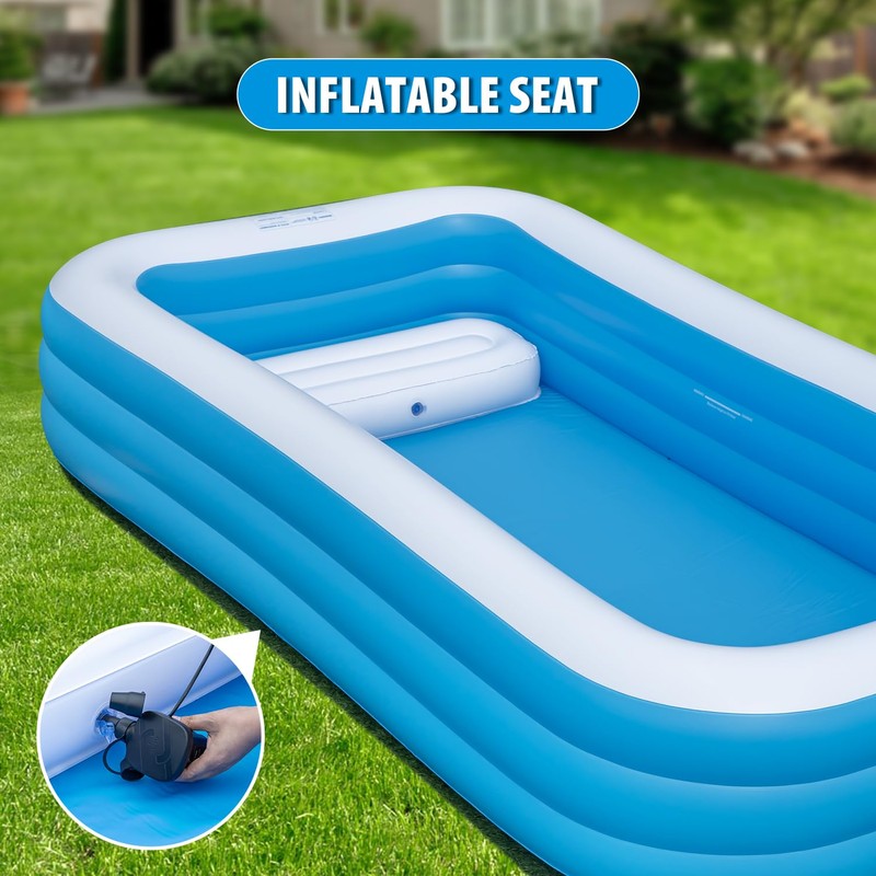 - 🏖️ Blow Up Pool With Seats: Our inflatable pool for adults features a comfortable bench, providing a place for you and your kids to relax and enjoy the summer breeze. A place where you or friends can rest in a more comfortable way instead of sitting on the ground.