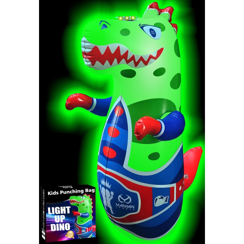 Punch-Activated LED and Roaring Dinosaur Punching Bag for Kids | Bounce-Back Toy for Safe, Active Play | Durable Fun Gift for Toddlers Ages 2-8 (No Batteries)