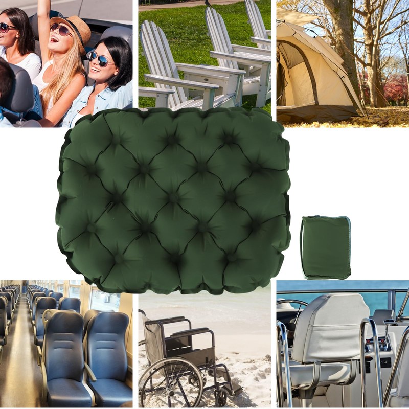 Inflatable Seat Cushion,Portable Air Sitting Pad with Carry Bag,Moisture and Water Resistant Camping Chair,Portable Lightweight Travel Air Sitting Pad,Best for Camping, Bleachers(Green)