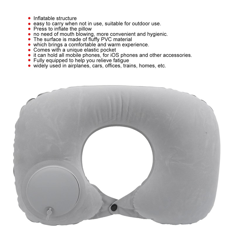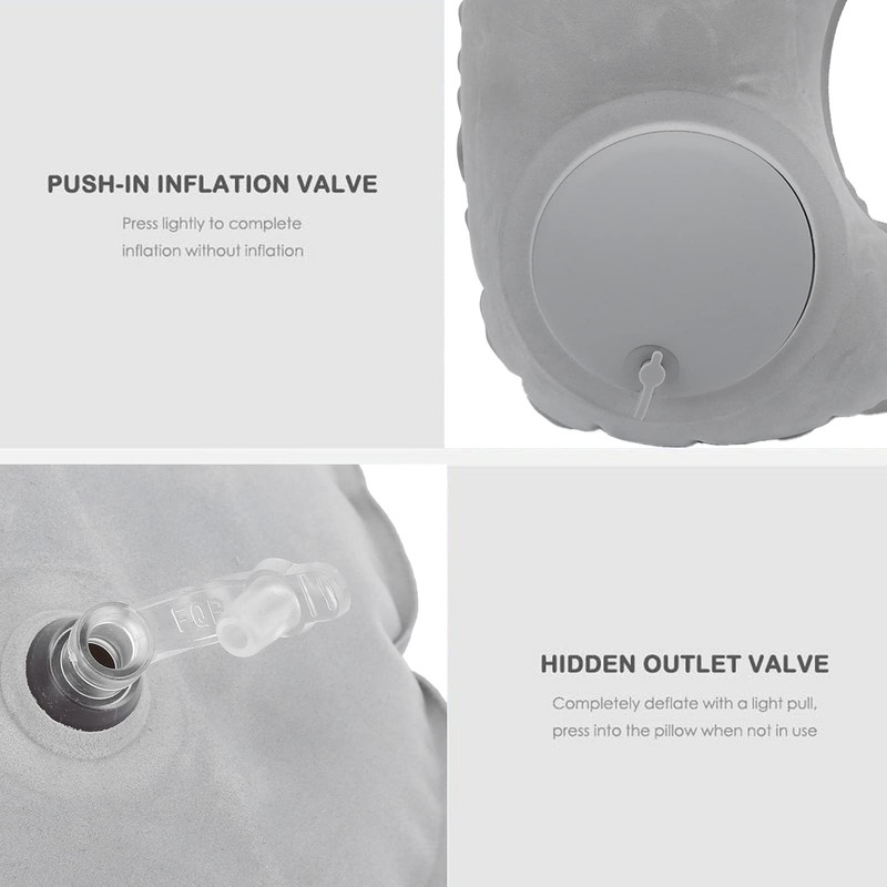 - Inflatable without blowing air :Inflatable Air Pillow U Shaped does not need to blow with a mouth. By repeatedly pressing the built-in air pump, it can be inflated within 30-60 seconds. Press the air release valve to deflate in a few seconds. Press to inflate the pillow, which is healthier, easy to operate and carry.