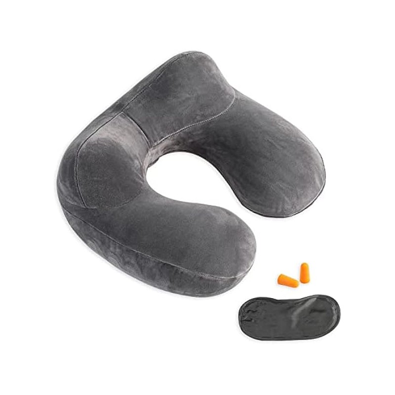 Inflatable Travel Pillow, Neck Pillow Support for Traveling, Airplanes, Cars, and Offices with Compact Carrying Bag, Soft Velvet Washable Cover, Ideal for Adult Sleepers (Grey)