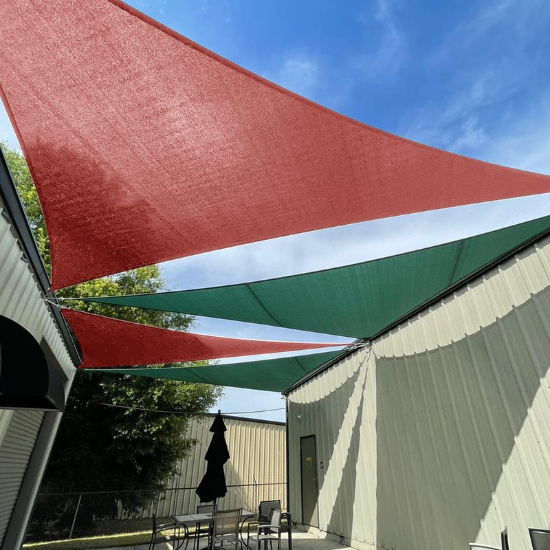 - Air Permeability & UV Blockage: Blocks up to 95% harmful UV and sunlight. Allows water and air to go through to increase the sail's cooling power, Not waterproof. The edges are curved (not straight) to enhancing pull strength and preventing drooping