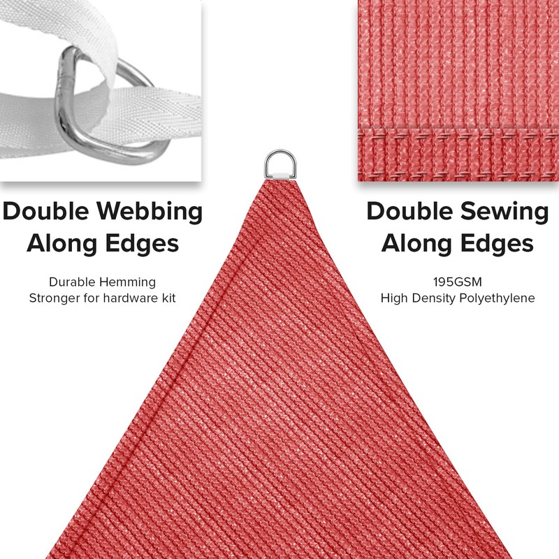 - Heavy Duty Material: The sun shade sail is made of 195GSM UV protected 100% brand new HDPE(High Density Polyethylene)shade fabric. Comes with strong stitched seam and fitted D ring in each corner. (Not waterproof)
