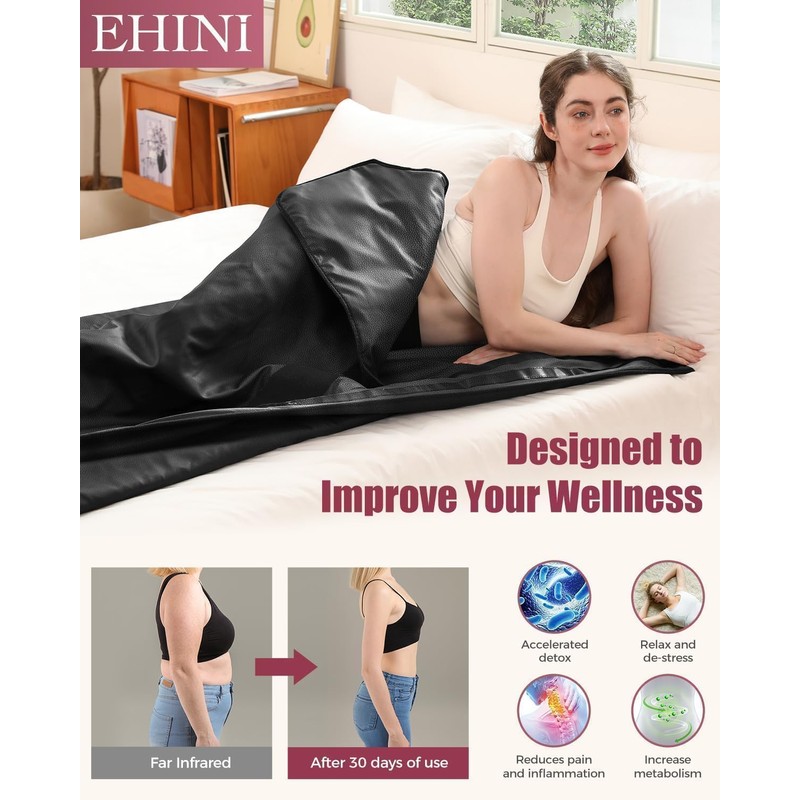 EHINI Infrared Sauna Blanket-Sauna Blanket for Home Use, Portable Design for Relaxation and Detoxification Highest 176℉, 20-60 Minutes Timer, 6 ft x 2.65 ft (Silver)