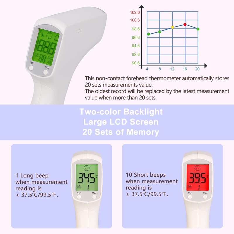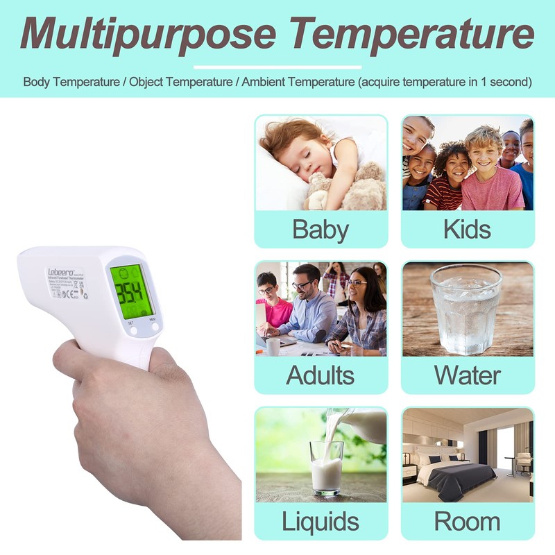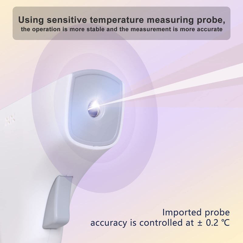 - Versatile: small and lightweight, ergonomic, easy to carry. One button design, easy and convenient operation, even elderly people can use it easily. It is mainly used to measure the temperature of the forehead of babies or adults, can also be used for pets and objects.