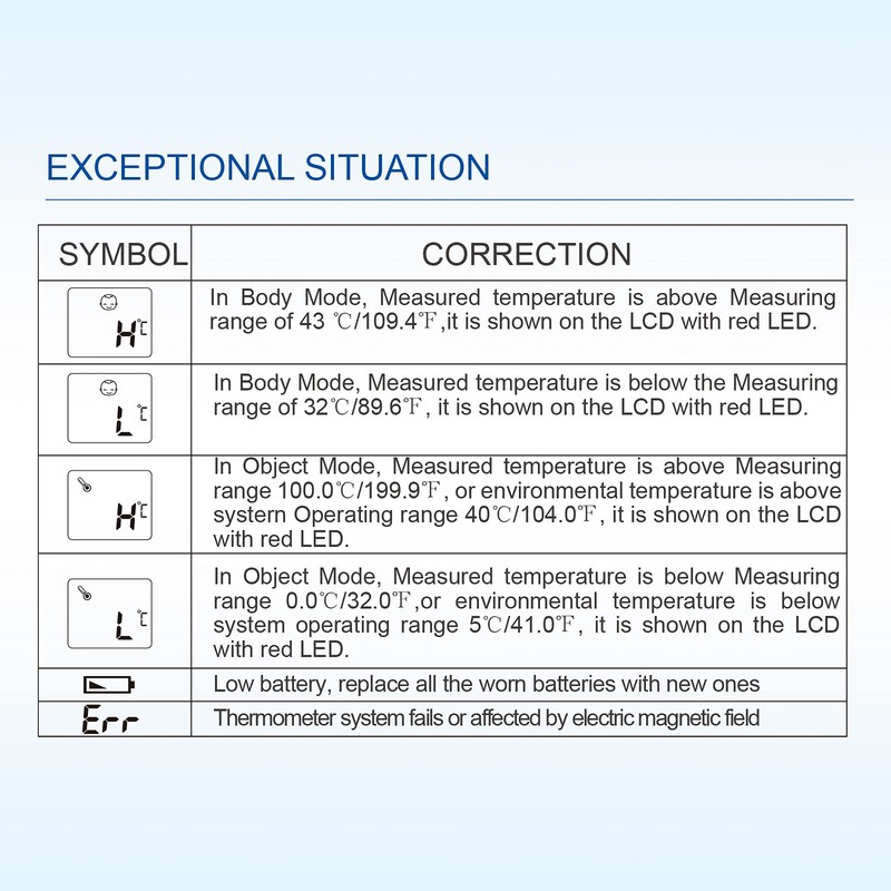 Measuring range: 32°C ~ 42.9°C (body temperature).