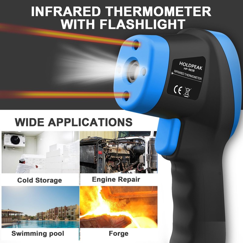 Infrared Thermometer, IR Digital Laser Temperature Meter -50 to 1360°C H HOLDPEAK 985B with Adjustable Emissivity and Alarm for High/Low Temperature, for Kitchen/Barbecue/Industry