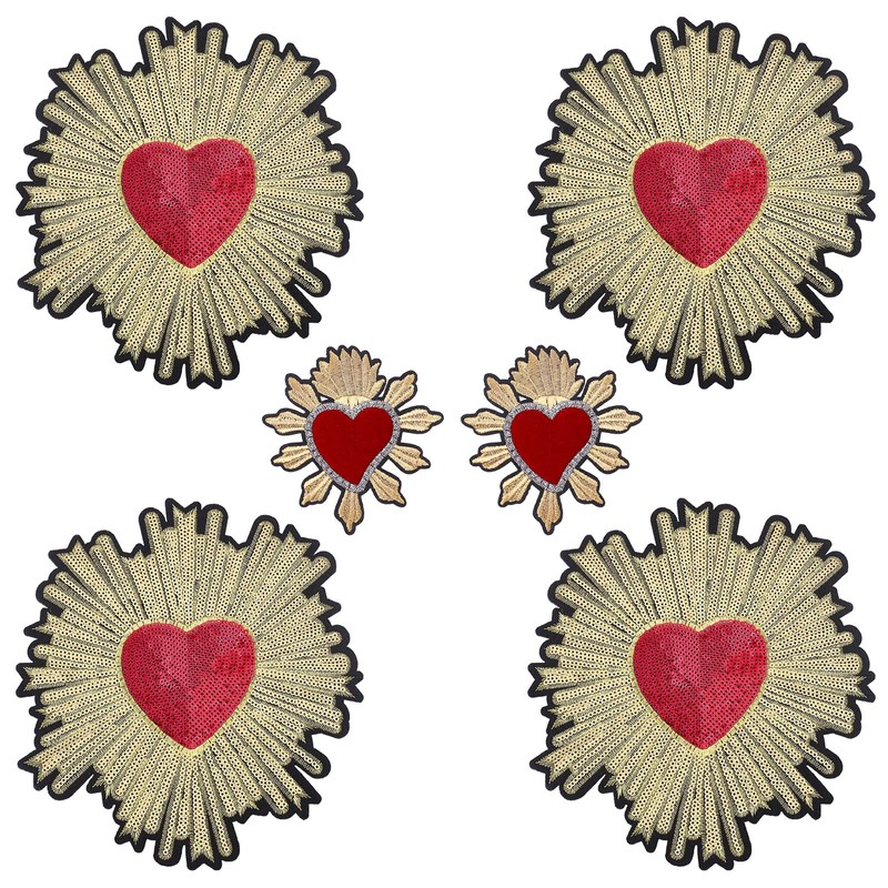 INFUNLY 6pcs Embroidery Applique Heart Patches Large Heart Flowers Sequin Patches Sew on Gold Sequin Fabric Patches Applique Badges for Jeans Jacket Women's Clothing Bag Caps