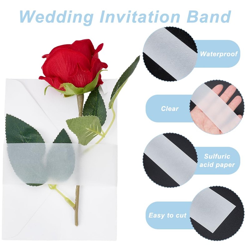 INFUNLY Pack of 200 Parchment Belly Bands for 5 x 7 Invitations Transparent Invitation Belly Bands Parchment Wraps Paper Parchment Belly Strips 12.2 x 1.6 (6) cm for Envelopes Wedding Invitation Cards
