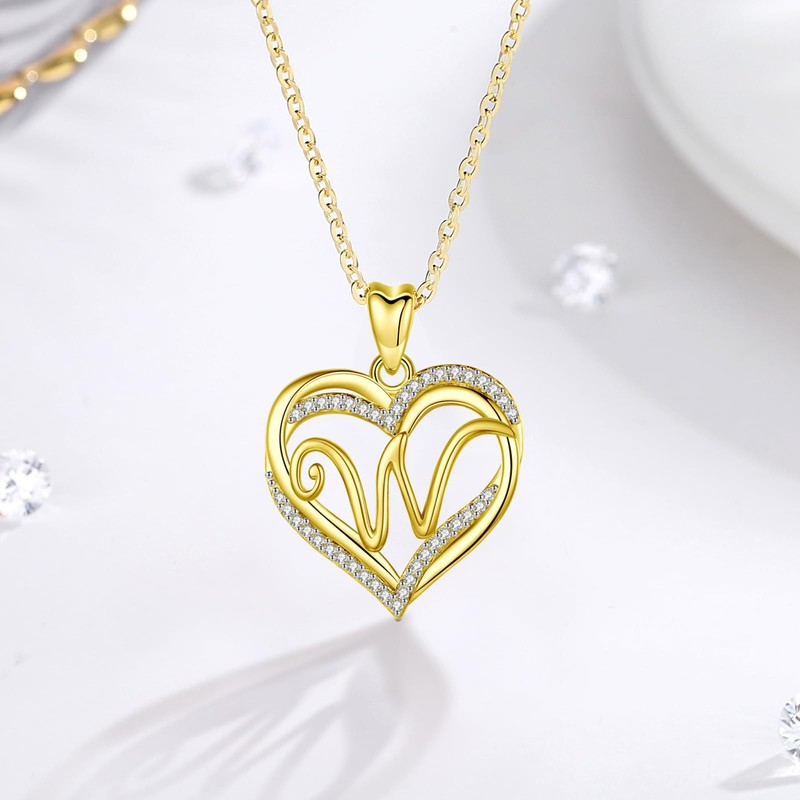 INFUSEU Necklace with Letters, Heart Pendant Necklace, Letter A-Z Alphabet Jewellery, Double Heart Initial Chains, Cubic Zirconia CZ for Women, Romantic Gifts for Girlfriend, 20 Inch Chain, Gold