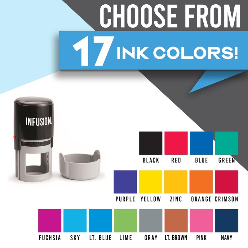 - INK COLORS - Choose from Black, Blue, Red, Green, Purple, Gray, Orange, Sky, Lt. Blue, Lime, Brown, Yellow, Zinc, Crimson, Fuchsia, Navy using the Customize Now option
