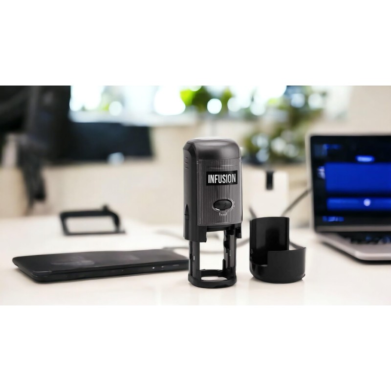 Infusion Custom Logo Round Self-Inking Rubber Stamp (2" Diameter), Orange