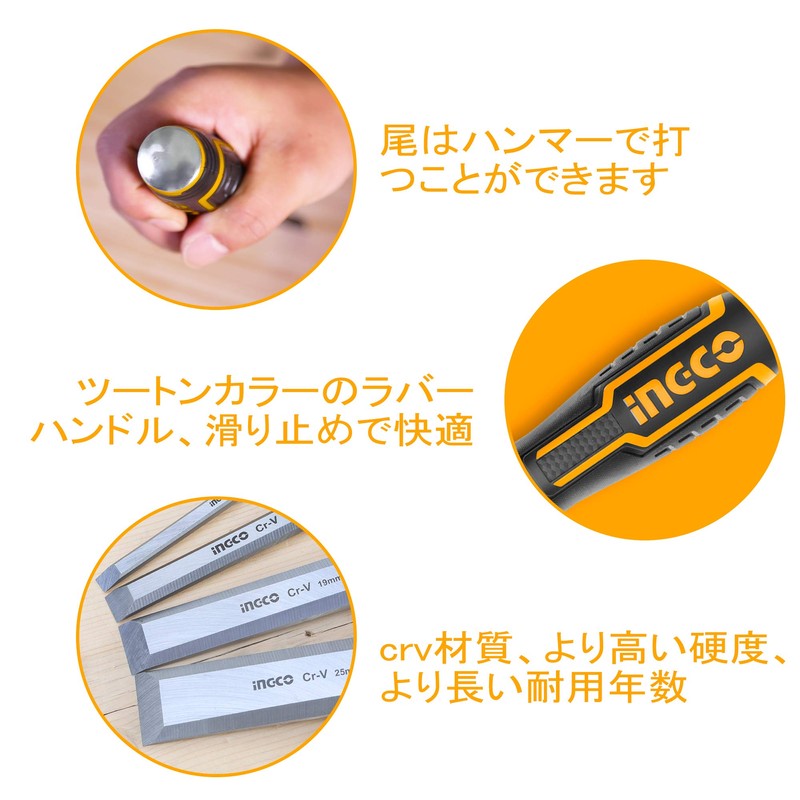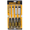 INGCO HKTWC0401 Woodworking Chisel Set, Set of 4, DIY Tools, Carving, Wood Grooving, 0.24, 0.57, 0.1 inches (6/12/19/25 mm)