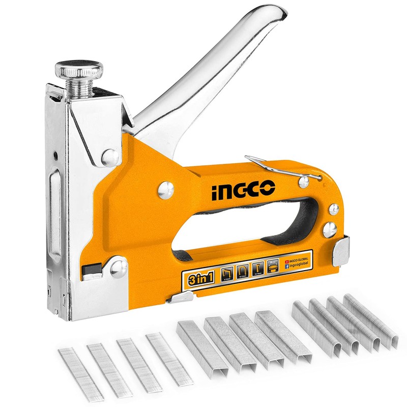 INGCO HSG1405 3-in-1 Hand Tacker with 600 Replacement Needles Staple Gun