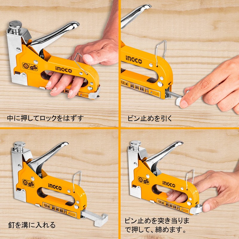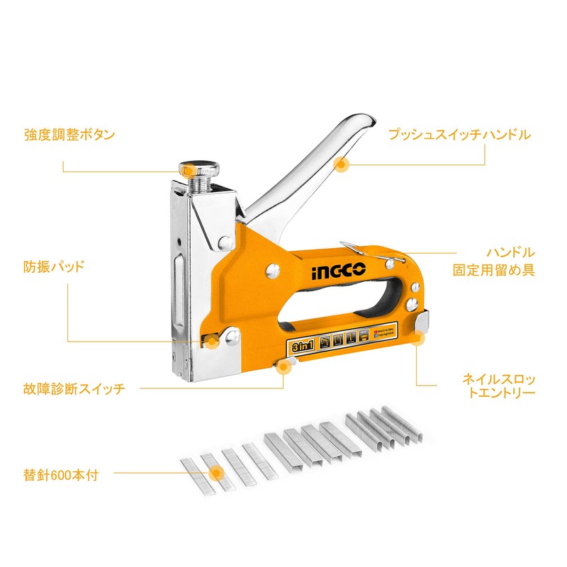 INGCO HSG1405 3-in-1 Hand Tacker with 600 Replacement Needles Staple Gun