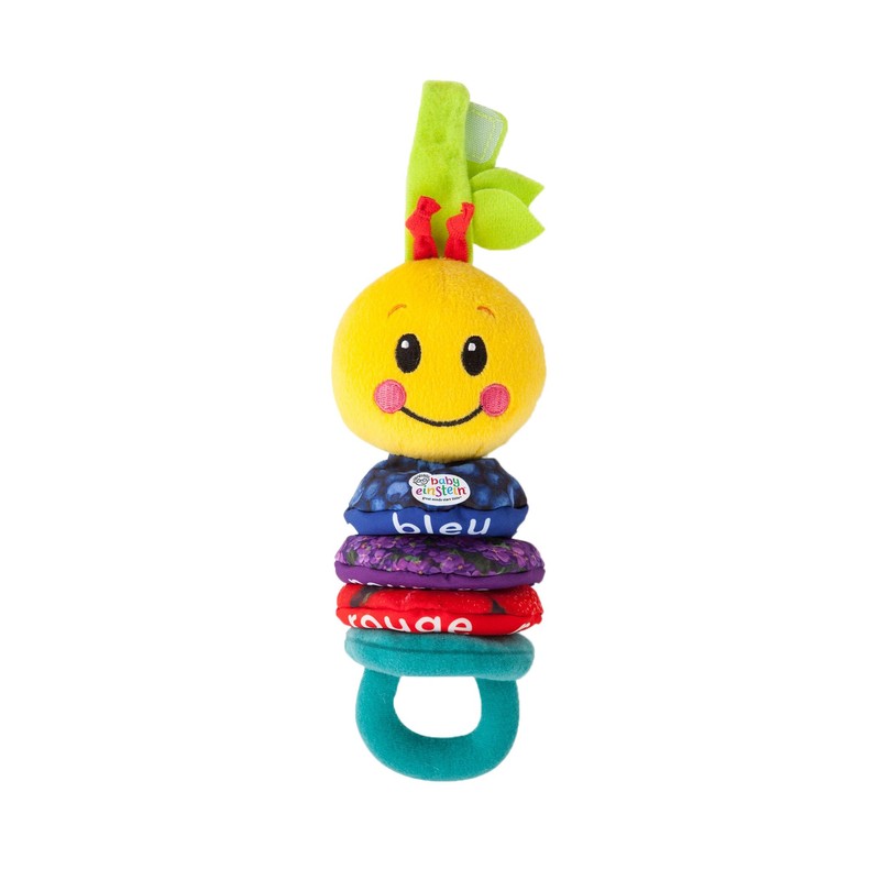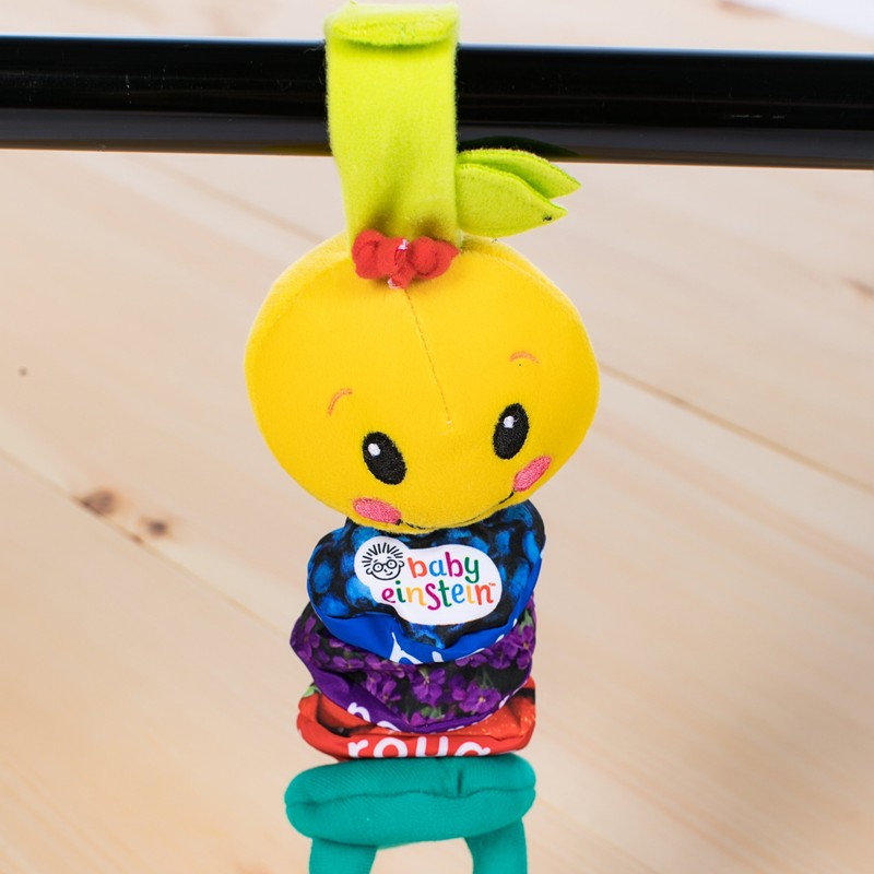 - Velcro “leaf” attaches easily to carriers for on-the-go fun