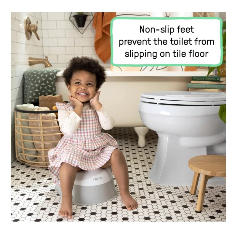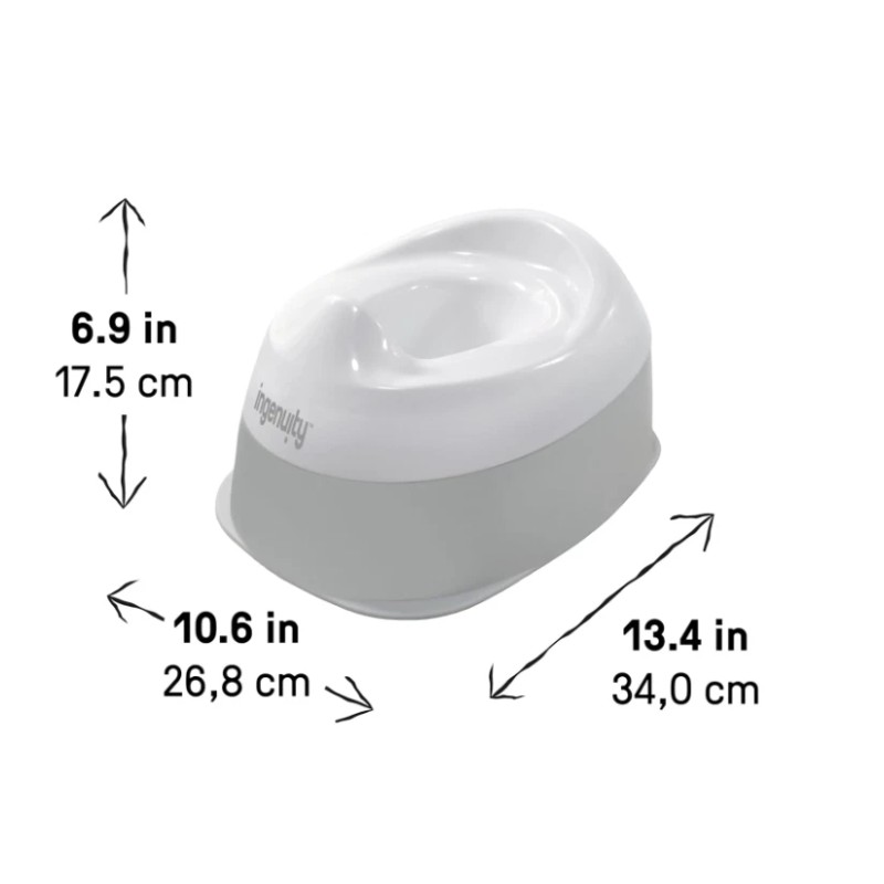 Ingenuity Ready Set Go Potty, Removable Bowl, Non-Skid Bottom, Wide Stable Base, Age 18 Months & Up, White & Grey