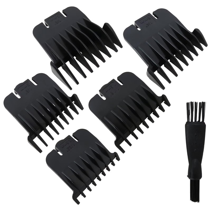 5 different size clipper combs with 1 cleaning Brush