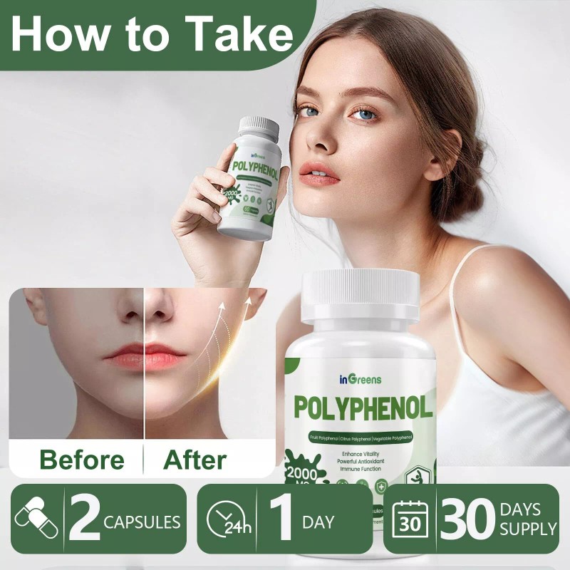 inGreens 25-in-1 Polyphenols Supplement | 2000MG Powerful Antioxidants for Age Defense | Enhance Vitality | from Polyphenol Superfood, Vegetables, Quercetin, Resveratrol - 60 Capsules