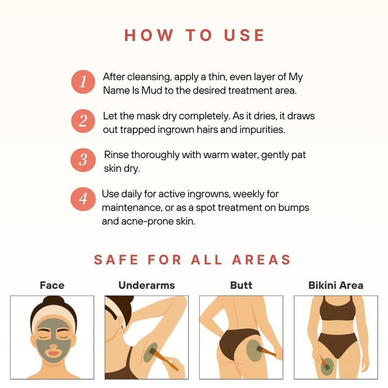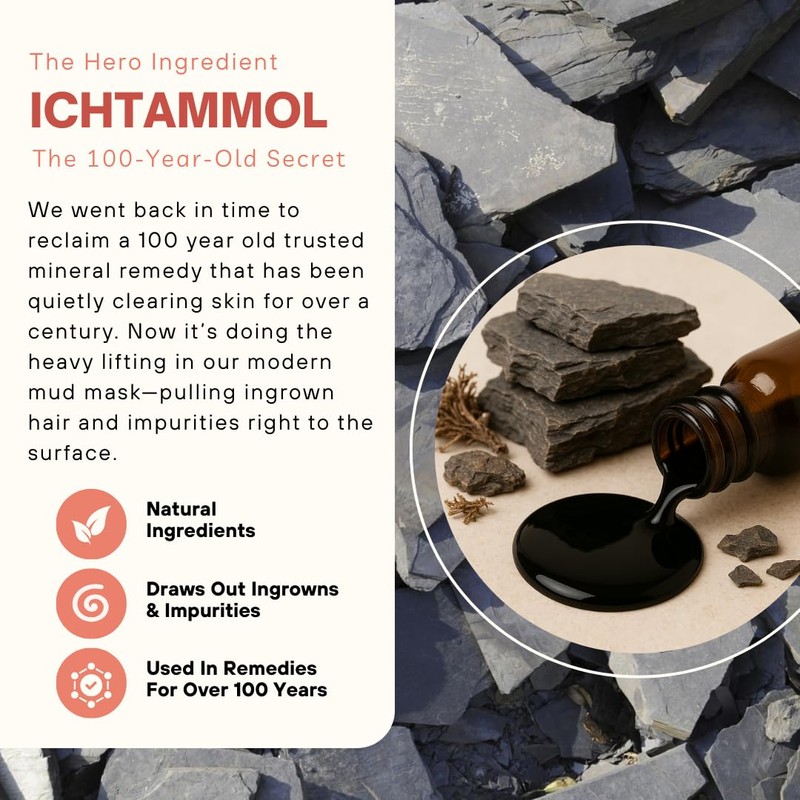 - Clear Stubborn Ingrown Hairs & Acne: Formulated with mineral-rich clays and natural drawing salve, this mud mask gently pulls out trapped hairs, blackheads, and impurities while calming irritation.