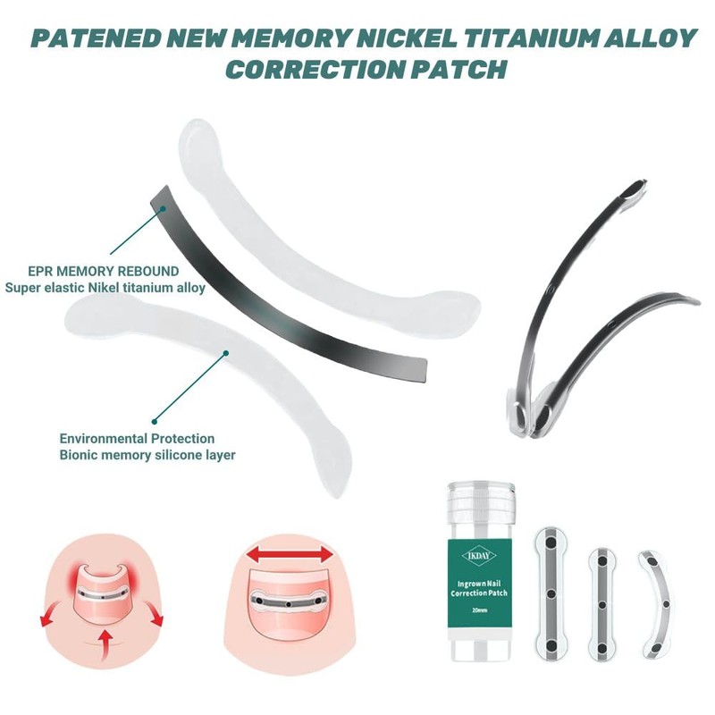 - PATENTED TITANIUM ALLOY SILICONE INGROWN TOENAIL CORRECOR : Our ingrown toenail corrector corrective patches are made of patented titanium alloy and a unique bionic memory silicone outer layer with amazing tensile strength and high-elasticity. Unique rounded end of toenail corrector enhance optimal contact and increase memory tension.Toenail Correcor patches can bend up to 180 degrees without breaking, effectively supporting the ingrown nail while ensuring comfort and longevity.