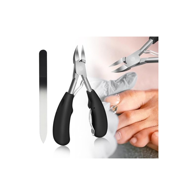 - Comprehensive Set: This ingrown toenail tool set includes a heavy-duty thick toenail clipper with an easy-grip handle, stainless steel nail scissors, and a Czech tempered glass black crystal nail file.