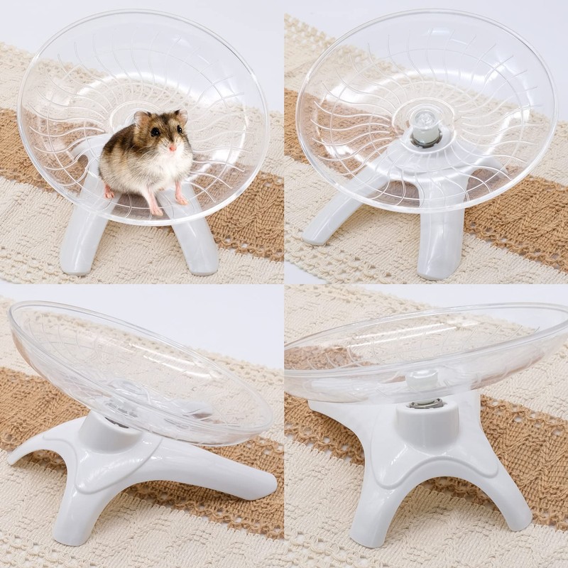 • Durable material: this hamster flying saucer is made of plastic disc and steel bearing, durable and safe to use. The sturdy tread can maintain reliable stand and support when running or walking and is completely safe for the pet's tail and feet.