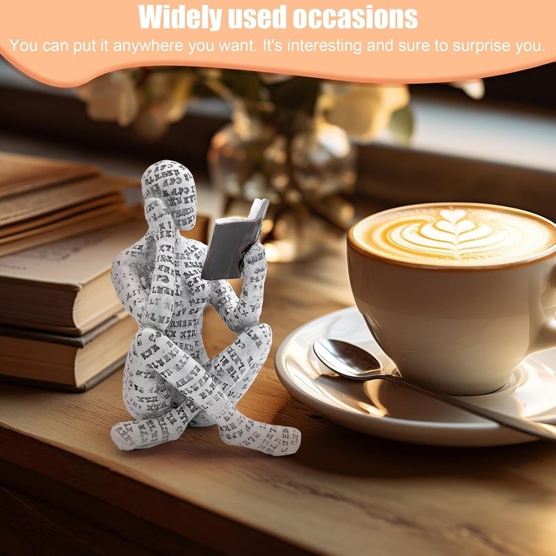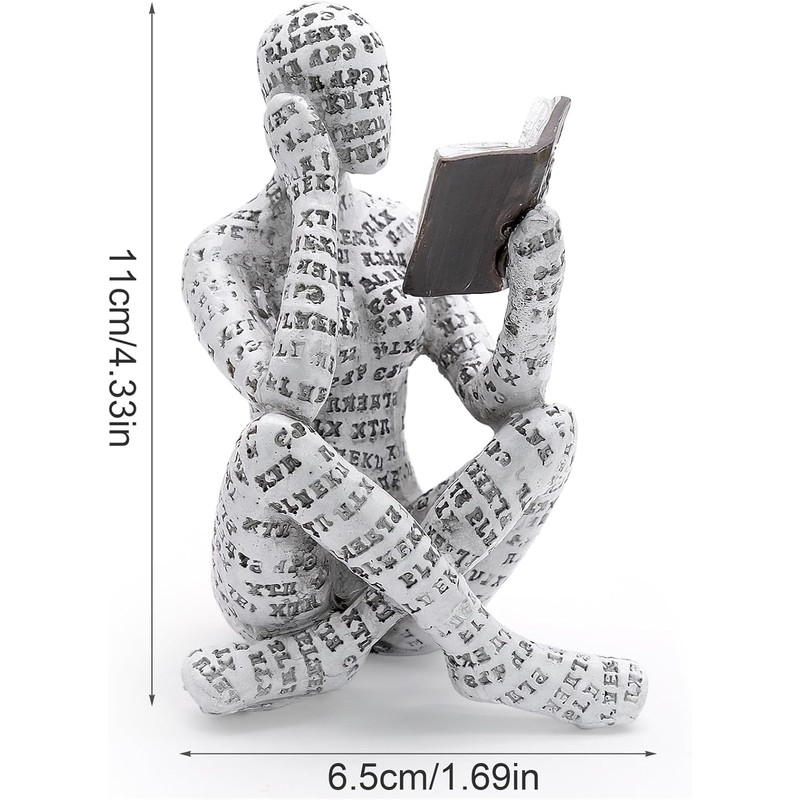 inheming Reading Figurine Bookshelf Decor, Creative Abstract Thinker Statue, Home Office Modern Shelf Desk Book Decoration