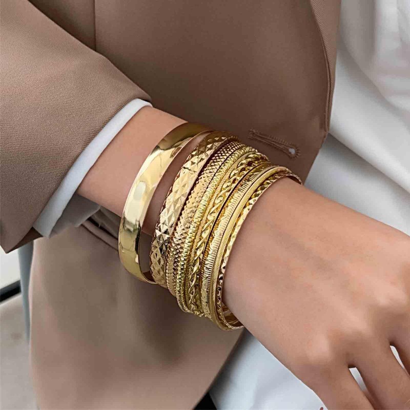 Inilbran Punk Bangles Gold Indian Bangle Bracelets Multi Stackable Wide Bangl...