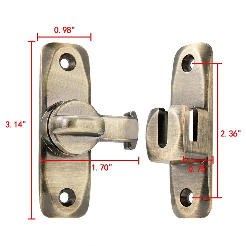 • 【Upgraded Door Lock】— The 90/180 Degree barn door lock can be mounted at 90° right angles, also can be mounted at 180 degree angles for even more space-saving use. Ideal for family bedrooms, doors, bathrooms, gates, sheds, cabins, windows, cabinets, kitchens, offices, barn door latch and more.