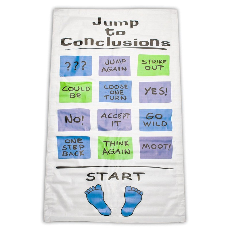 Jump to Conclusions Mat Office Space 40 x 24 in. White Vinyl Heavy Duty with Stitched Edges for Durability Adult Motivational Mat