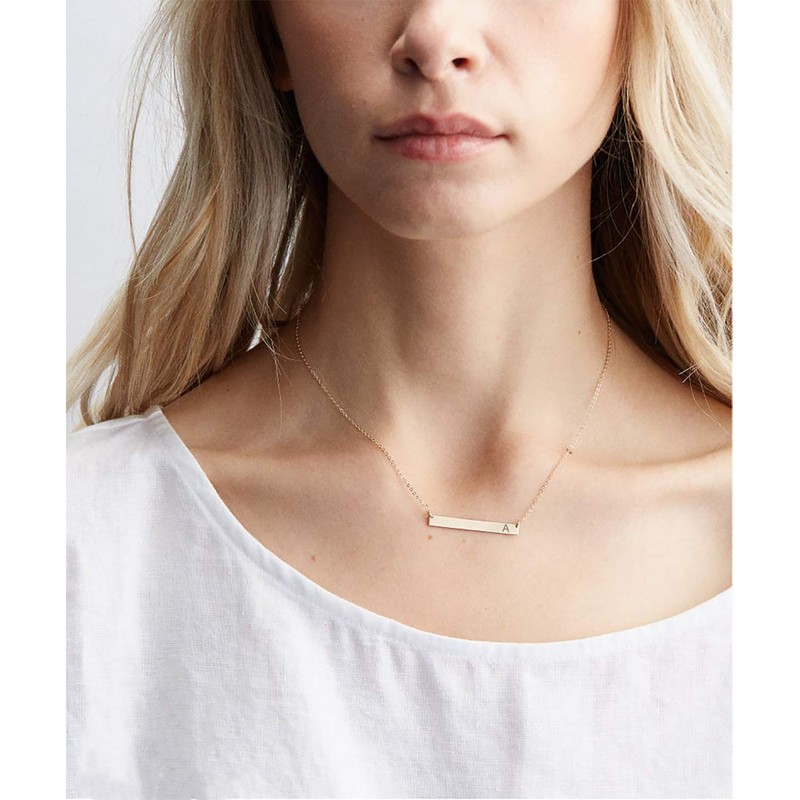 Initial Bar Necklace 18K Gold Plated Stainless steel Initial Necklace Simple Delicate Balance Bar Letter A Pendant Monogram Name Necklace for Women
