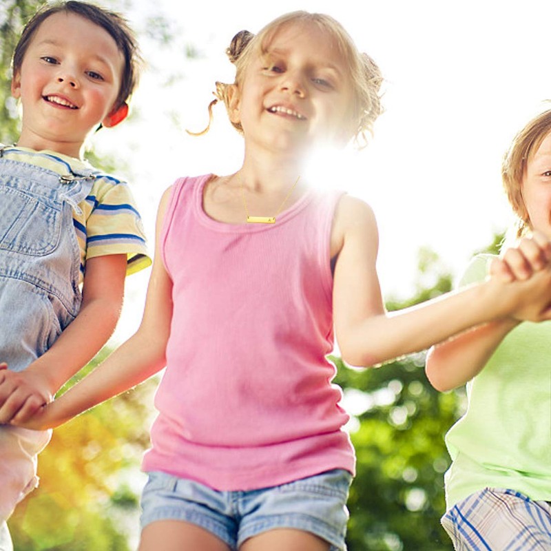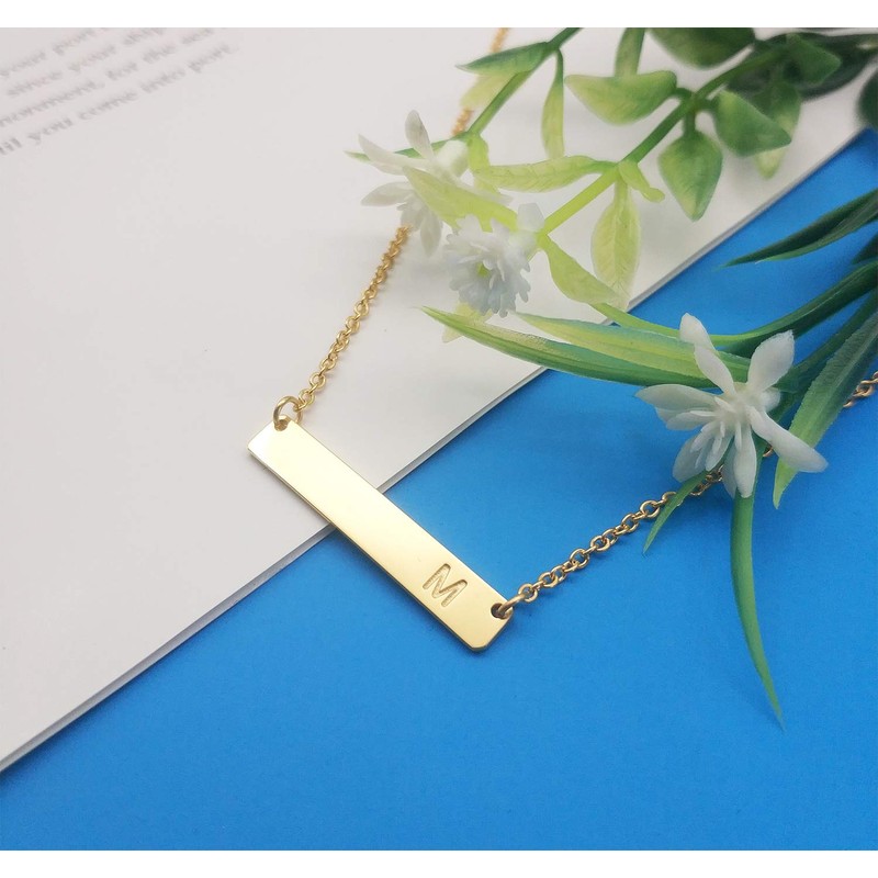 - Materials: This bar pendant initial necklace is made of high polished stainless steel. Featuring a delicate vacuum electroplating process, it glistens in sunlight and does not fade. You deserve to have this unique monogram name necklace