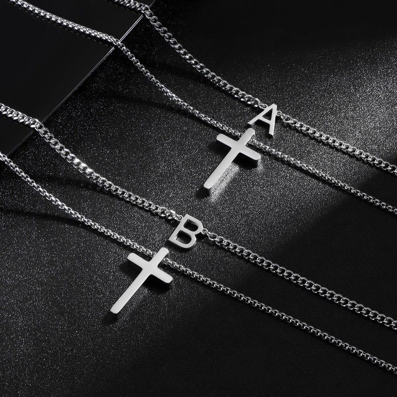 - [Size]:Mens Initial Cross chain length 18''/22''. Cuban chain and box chain cross necklace, different letter can help you find the best initial cross necklace for you. Lobster clasp design, easy to open and close.